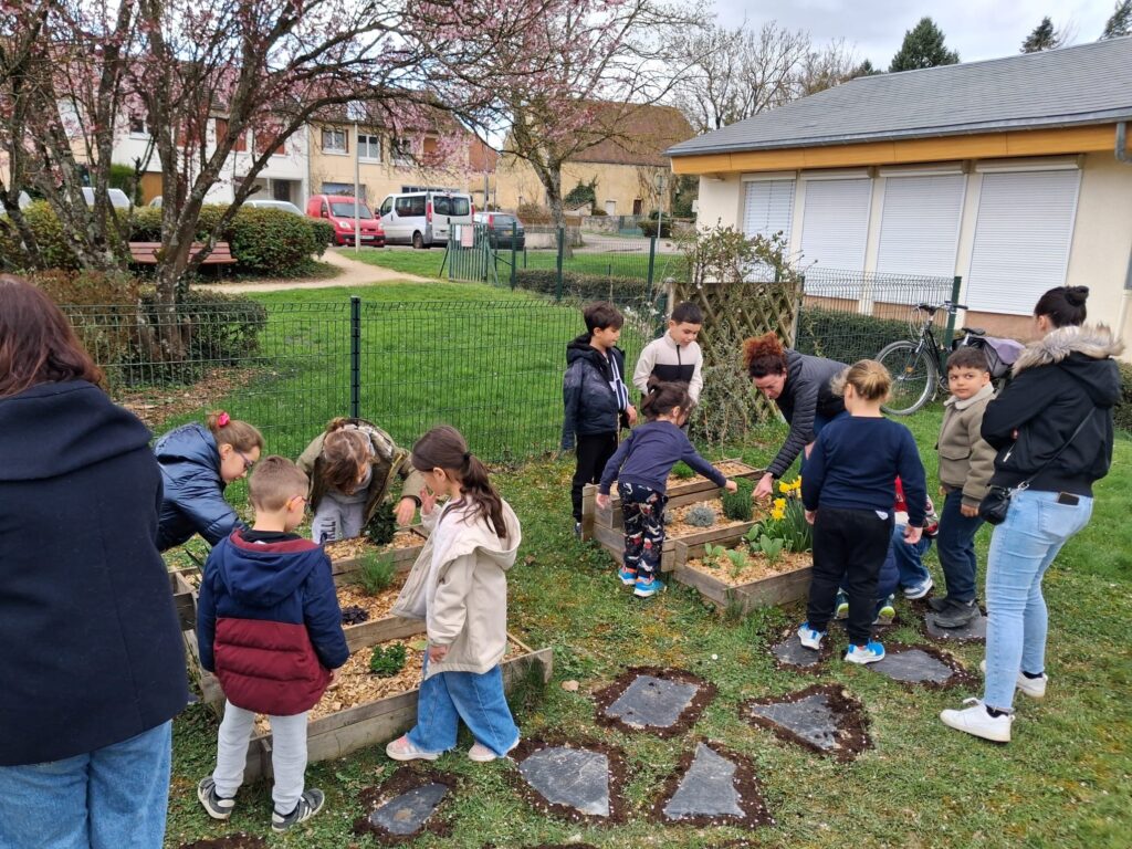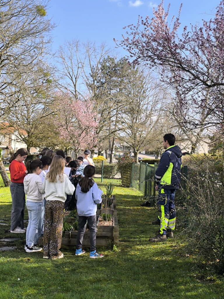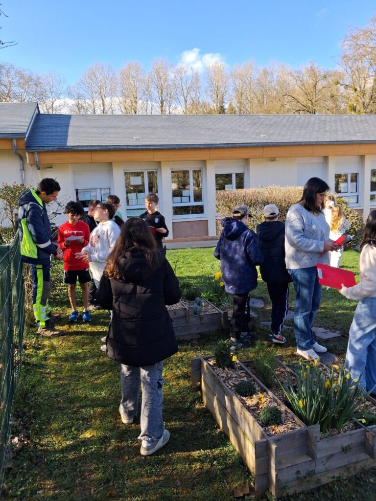 Jeudi 12 mars 2026 a eu lieu un riche échange entre les élèves de l’école élémentaire et le service technique communal sur le jardin aromatique mit en place dernièrement dans la cour de l’école.